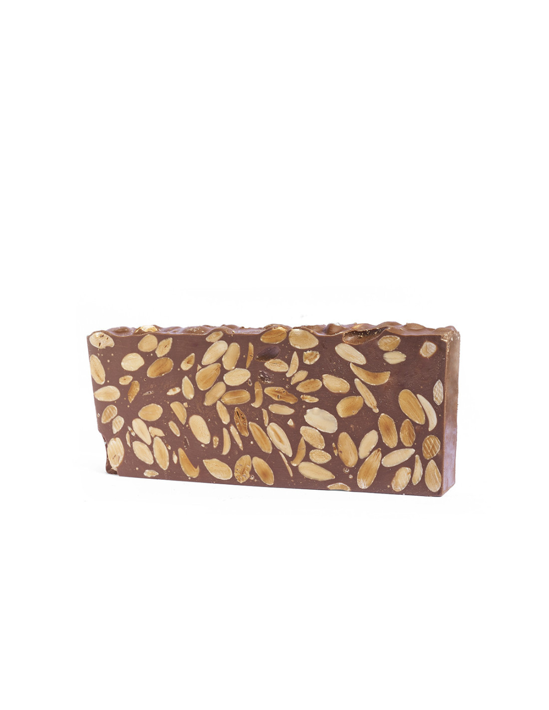 Cobertura de chocolate (65%) (edulcorante (maltitol), leche en polvo, manteca de cacao, pasta de cacao, emulgente (Lecitina de Soja), aroma natural de vainilla y almendra tostada (35%).