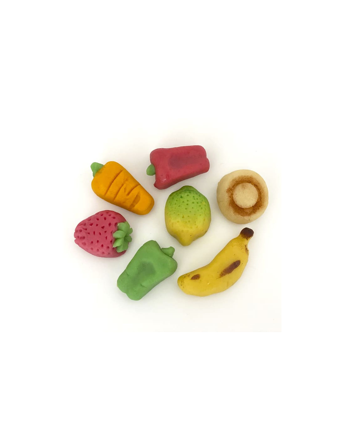 Elaboradas artesanalmente, estas frutas de mazapán de colores se realizan de forma individual por manos experimentadas en darles forma. Se presentan 200g de figuritas de frutas de mazapán envasadas en una bandeja (unas 12 frutitas).