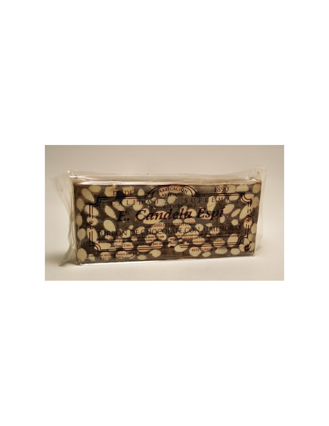 Turrón de chocolate con leche con almendras marconas seleccionadas.