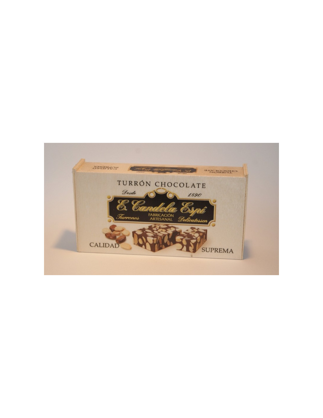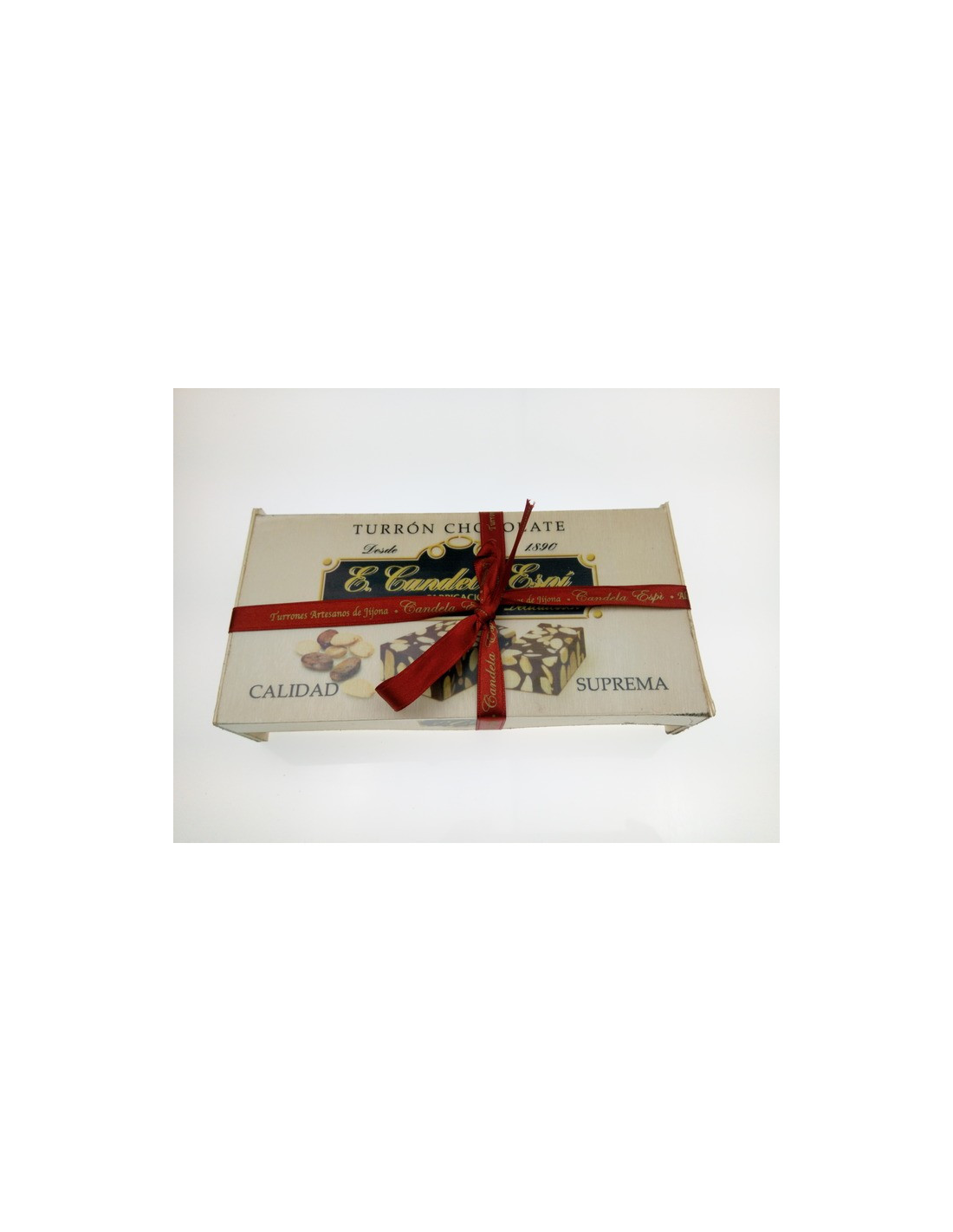 Autentico chocolate puro con almendra marcona,presentado en caja de madera.to