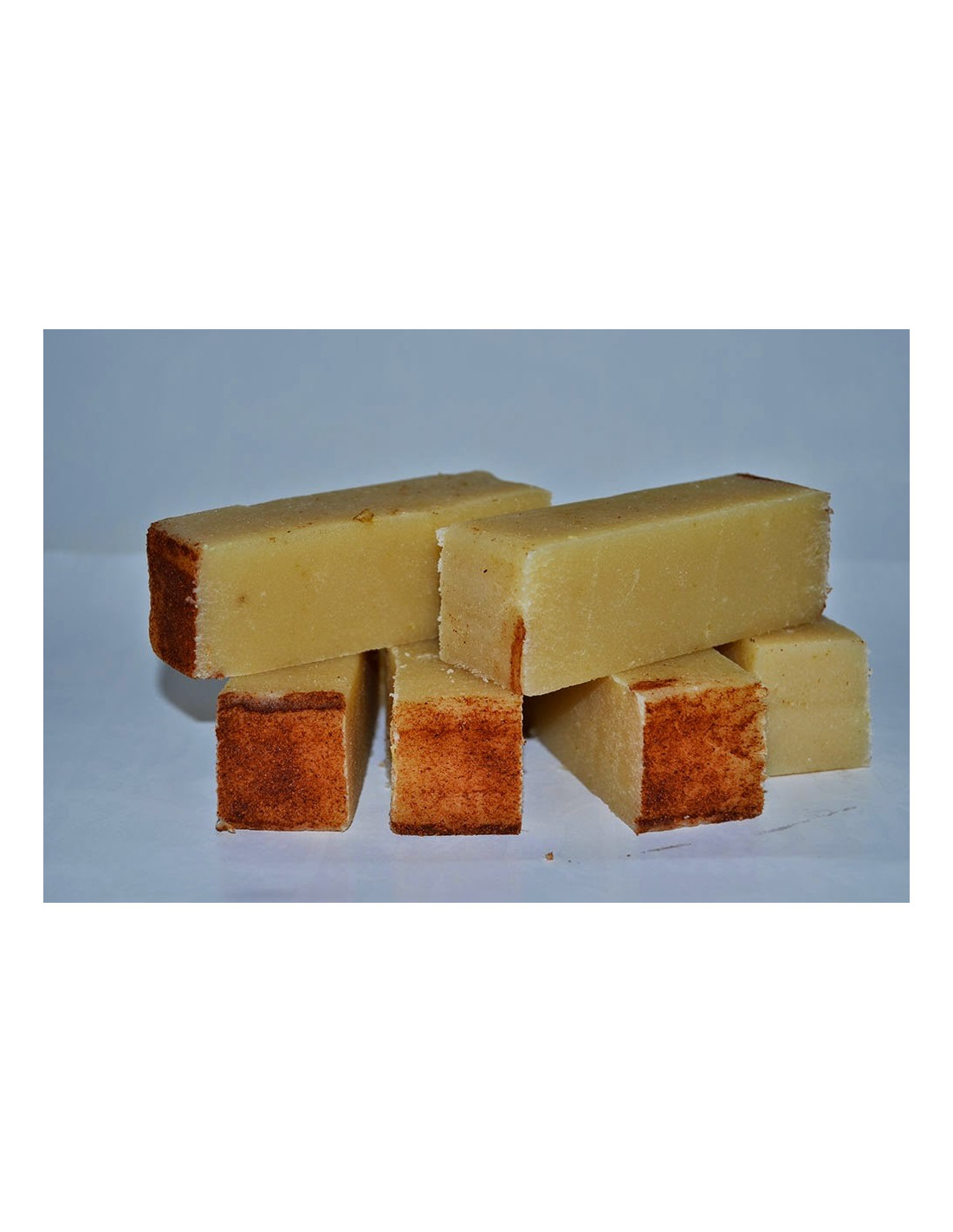 En nuestro exquisito turrón de nieve (o sea, de mazapán, el proceso es muy parecido al de la yema aunque sólo incorpora almendra cruda y azúcar) se le añade vainilla natural para que el jarabe previo obtenido en las mecánicas del obrador a más de 100 grados centígrados permita un sabor excepcionalmente delicado y exquisito. El proceso es también totalmente manual. Cuando se ha conseguido la masa óptima en las amasadoras, se extrae a mano el turrón para introducirlo en moldes, donde se enfría durante un día antes de cortarlo y envasarlo al vacío. En ese proceso interviene mucha mano de obra.