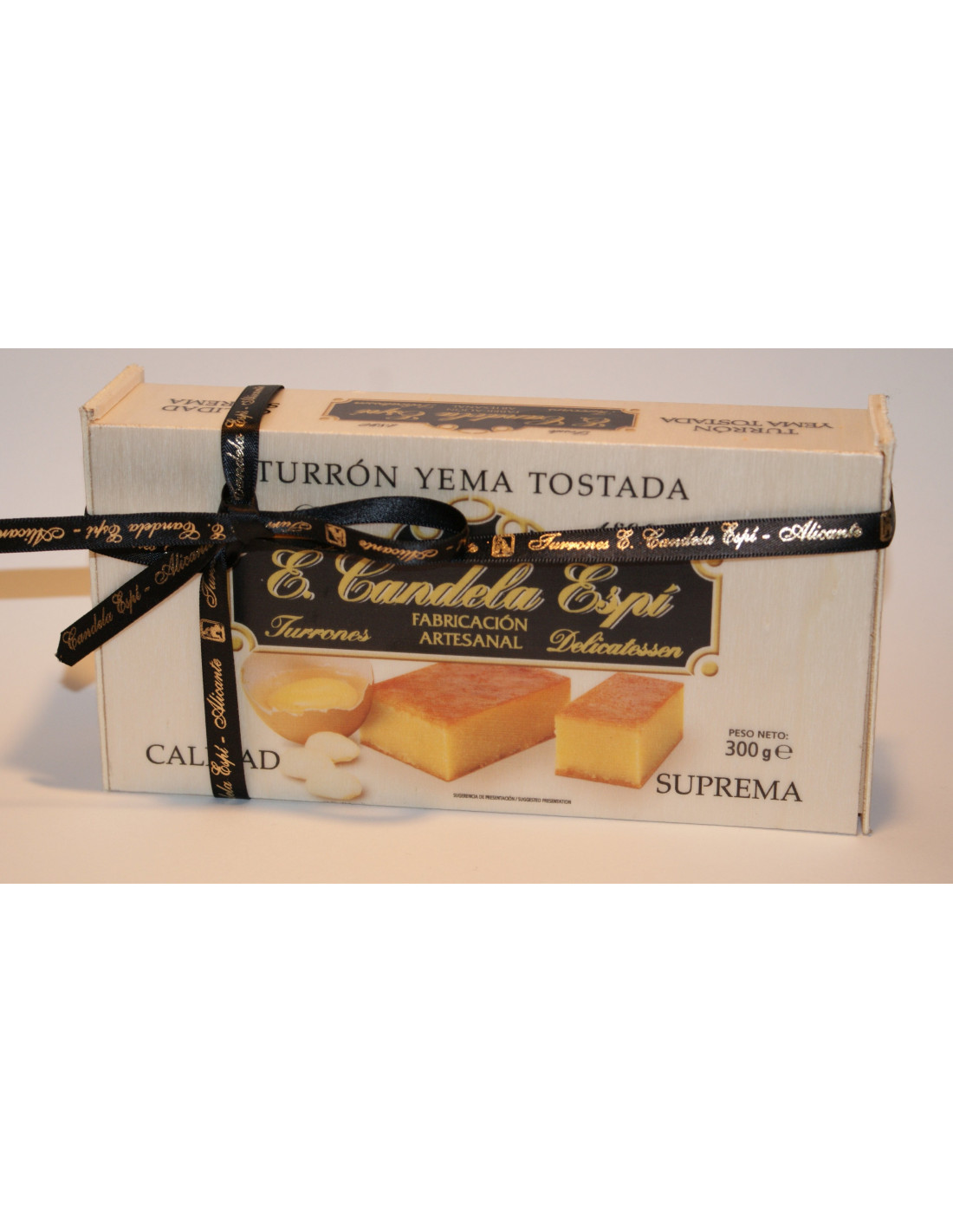 Turron de jaune grillé en boîte en bois de couleur lithographie.